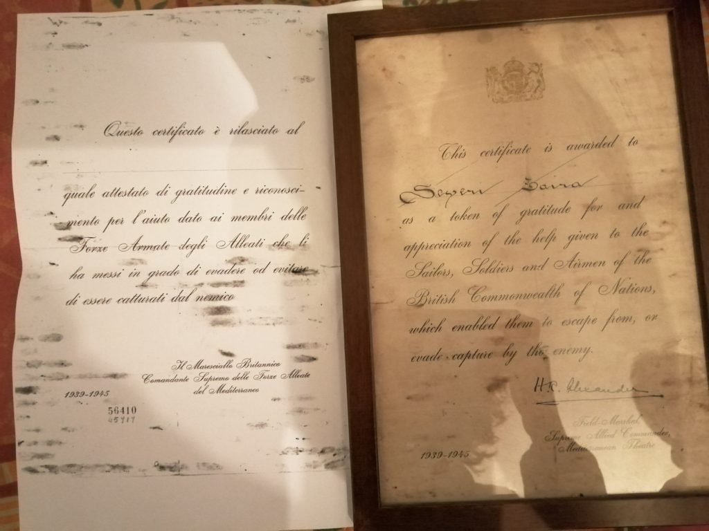 Questi 2 quadri sono attestati delle Forze Britanniche alleate che hanno rilasciato come ringraziamento a Severi Marino e sua sorella Alfina.