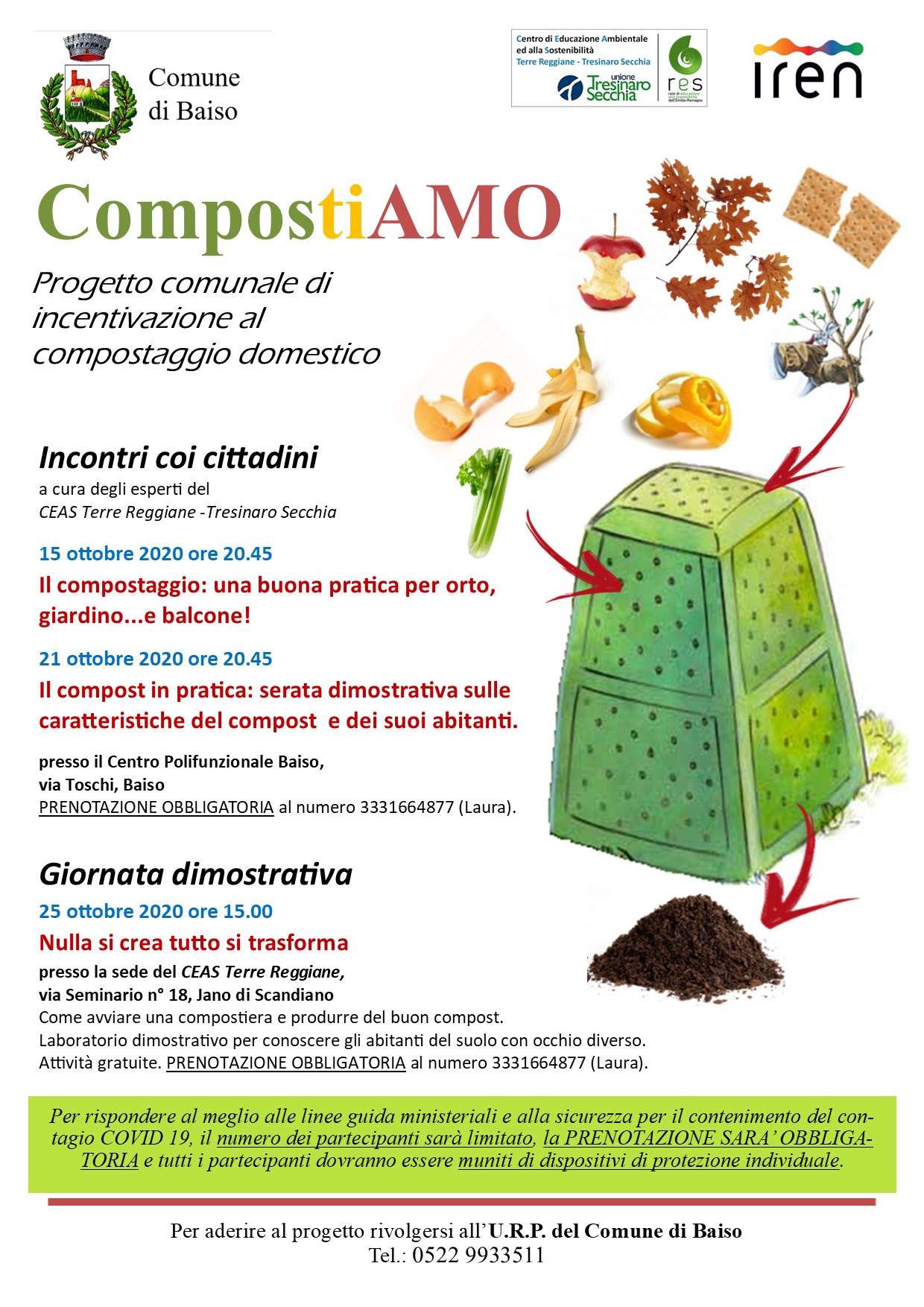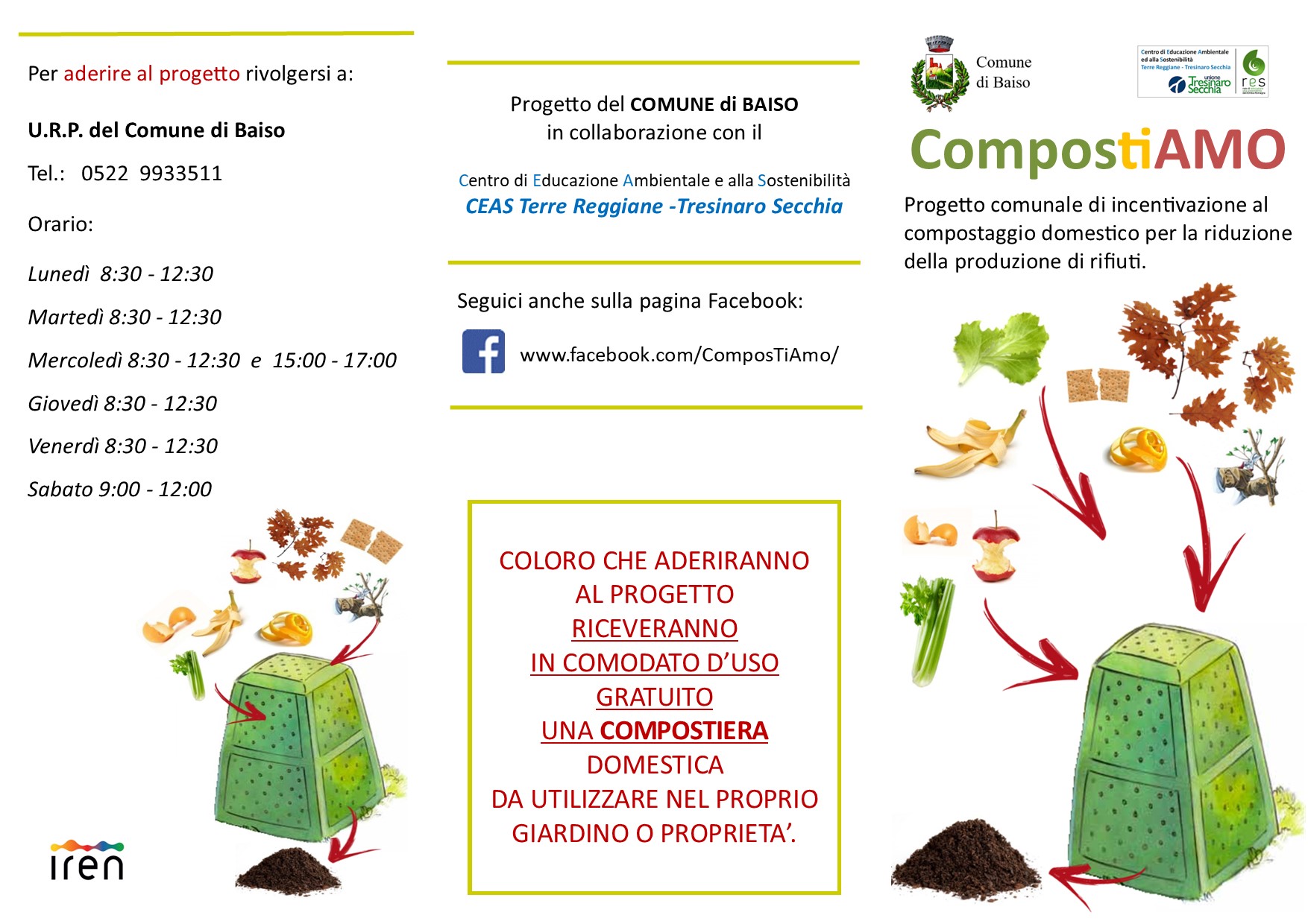 Si pubblicano i documenti relativi al progetto CompostiAMO, relativo all’incentivazione al compostaggio domestico e si segnalano gli appuntamenti del 15,21 e 25 ottobre di presentazione dell’iniziativa.